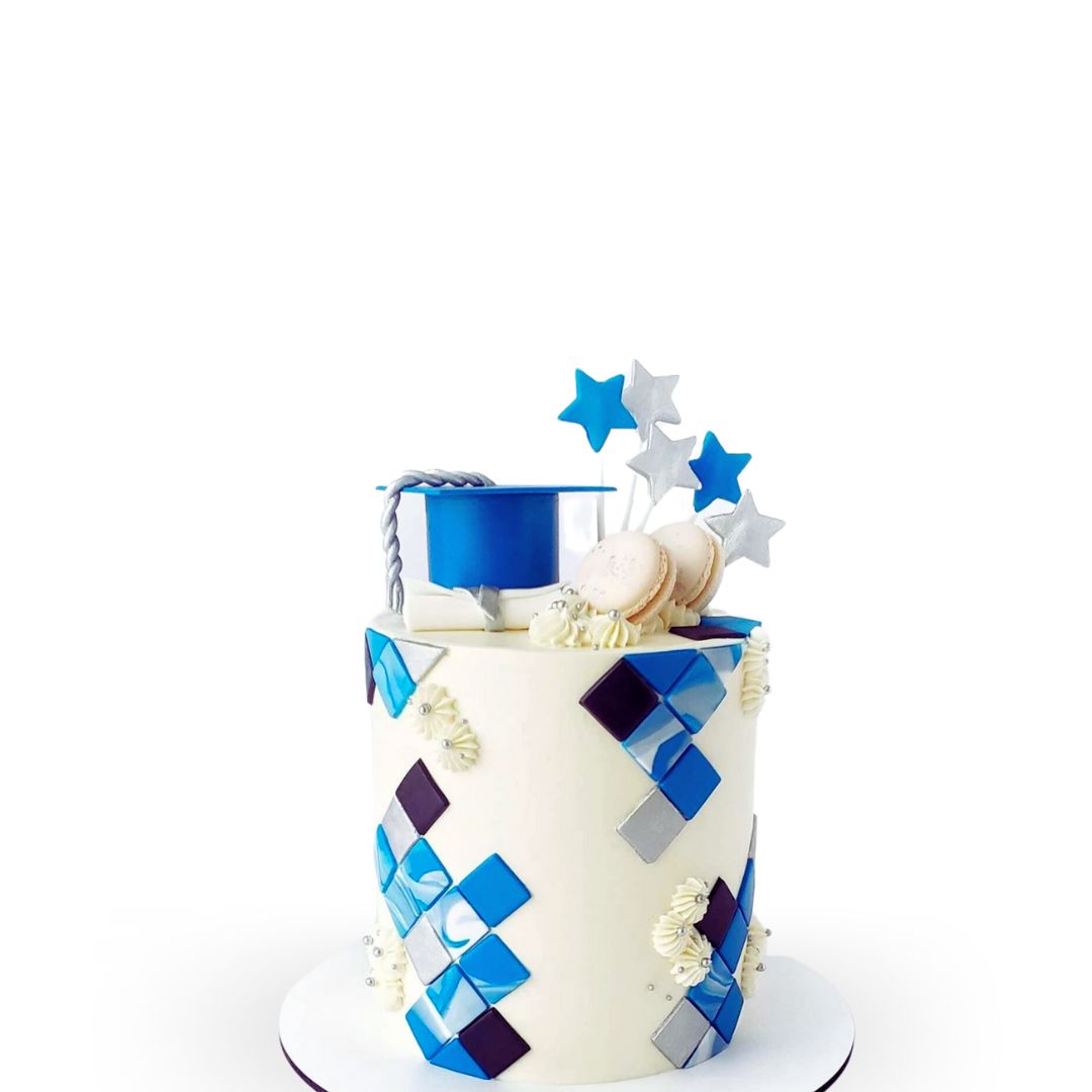 Pastel de Graduación con Estrellas y Macarrones